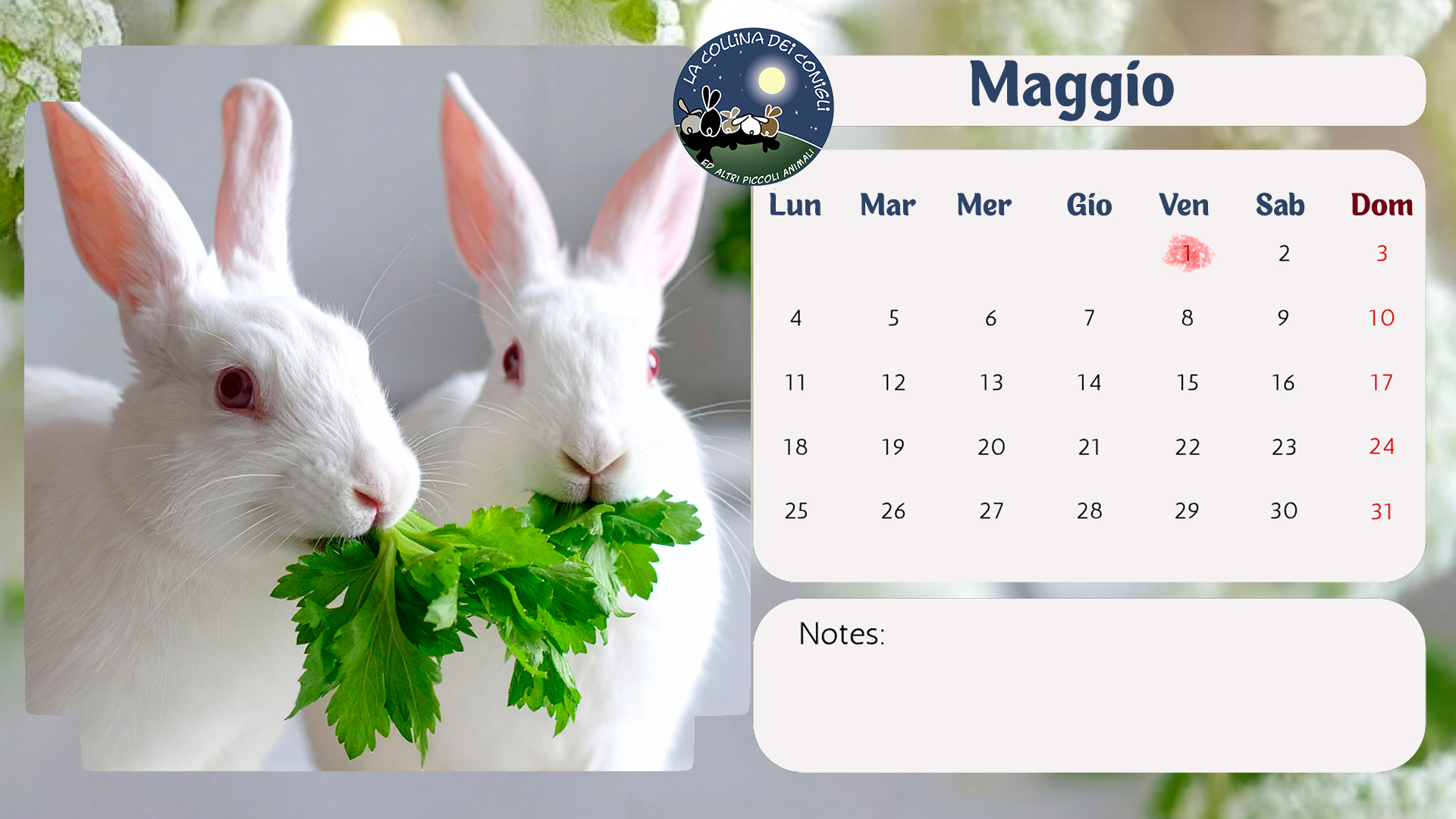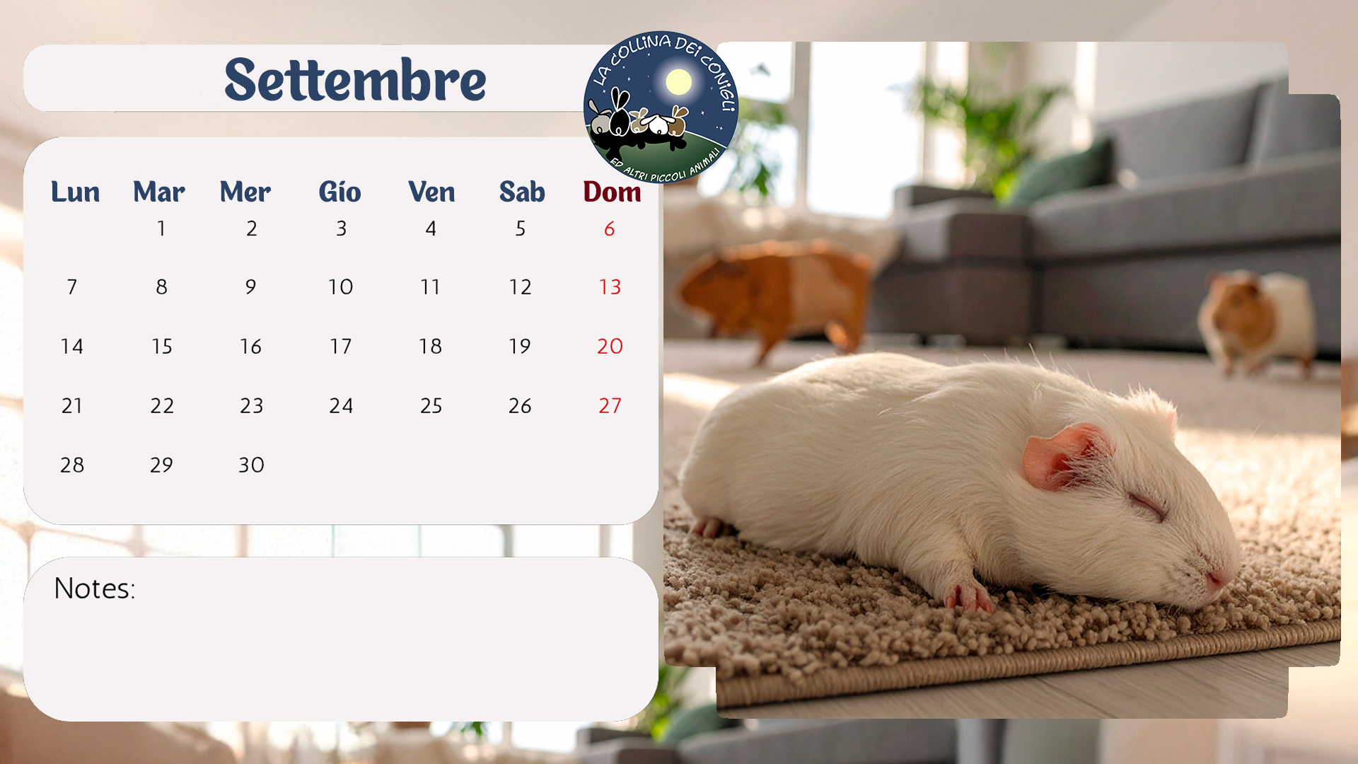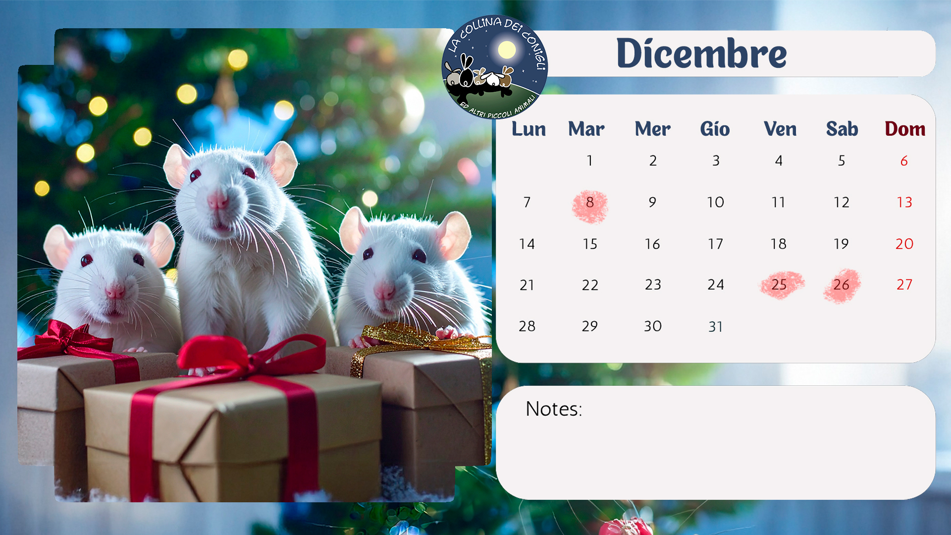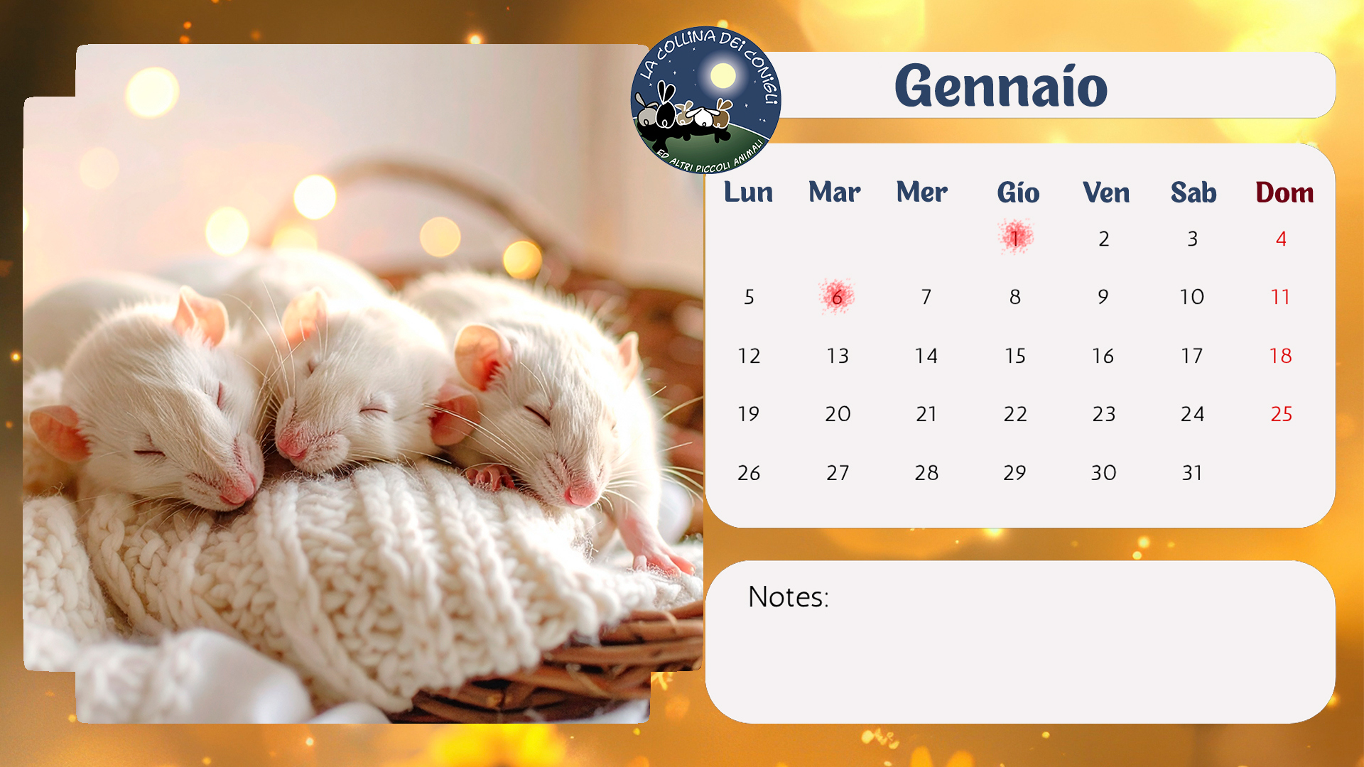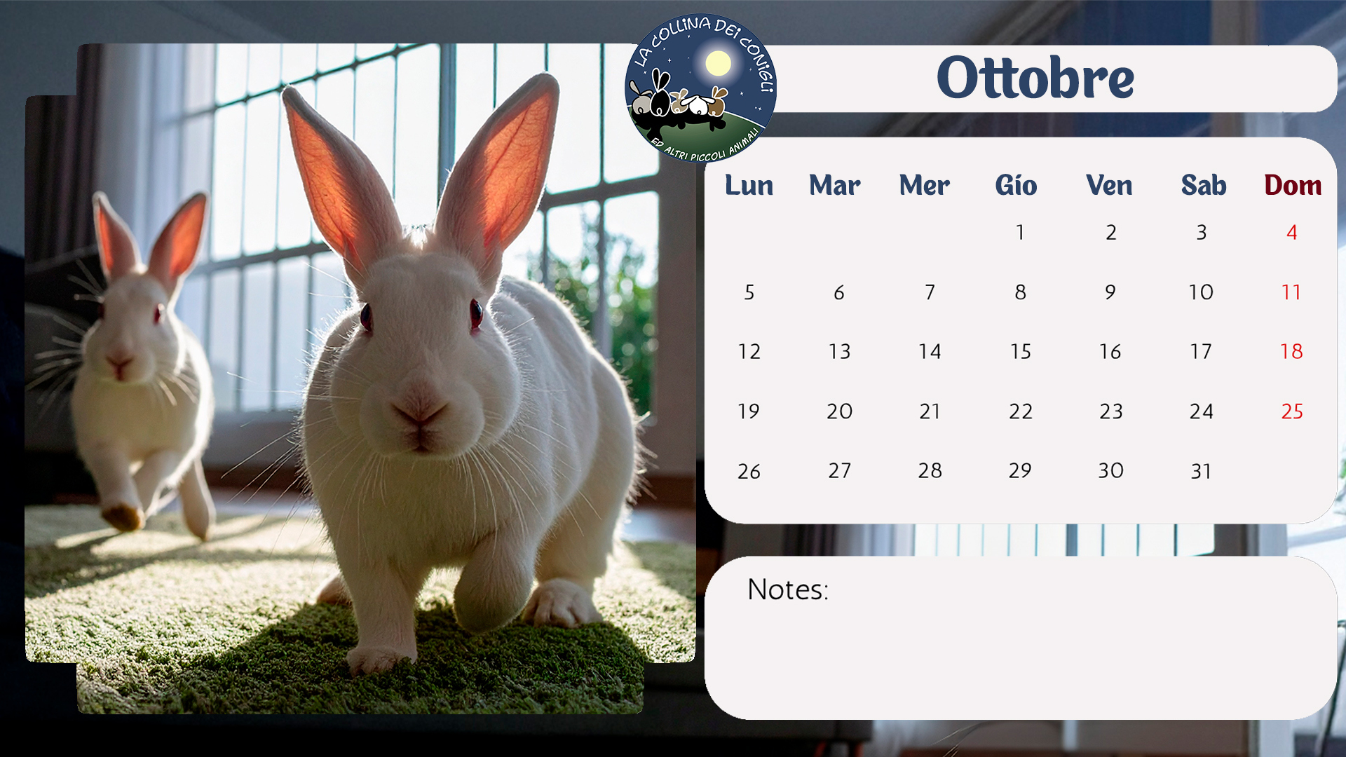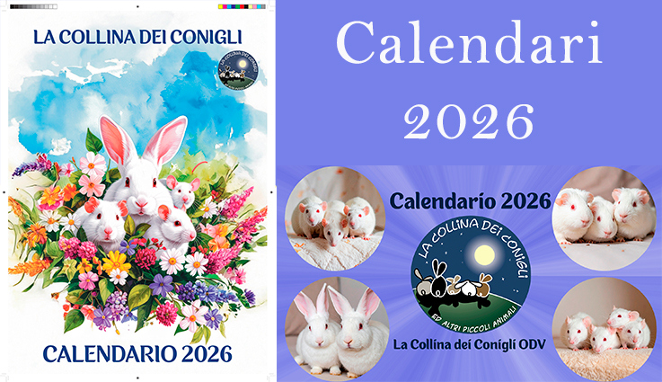 Sono arrivati i nuovo Calendari de La Collina dei Conigli! Tantissime foto di conigli, porcellini d'India e altri piccoli animali dell'Associazione. “Regalati un anno di dolcezza e speranza: acquistando il Calendario 2026 de La Collina dei Conigli ODV trasformi il destino di conigli, cavie, ratti e topi salvati dai laboratori. Ogni mese è un piccolo atto d’amore che diventa cura, protezione e nuova vita.”