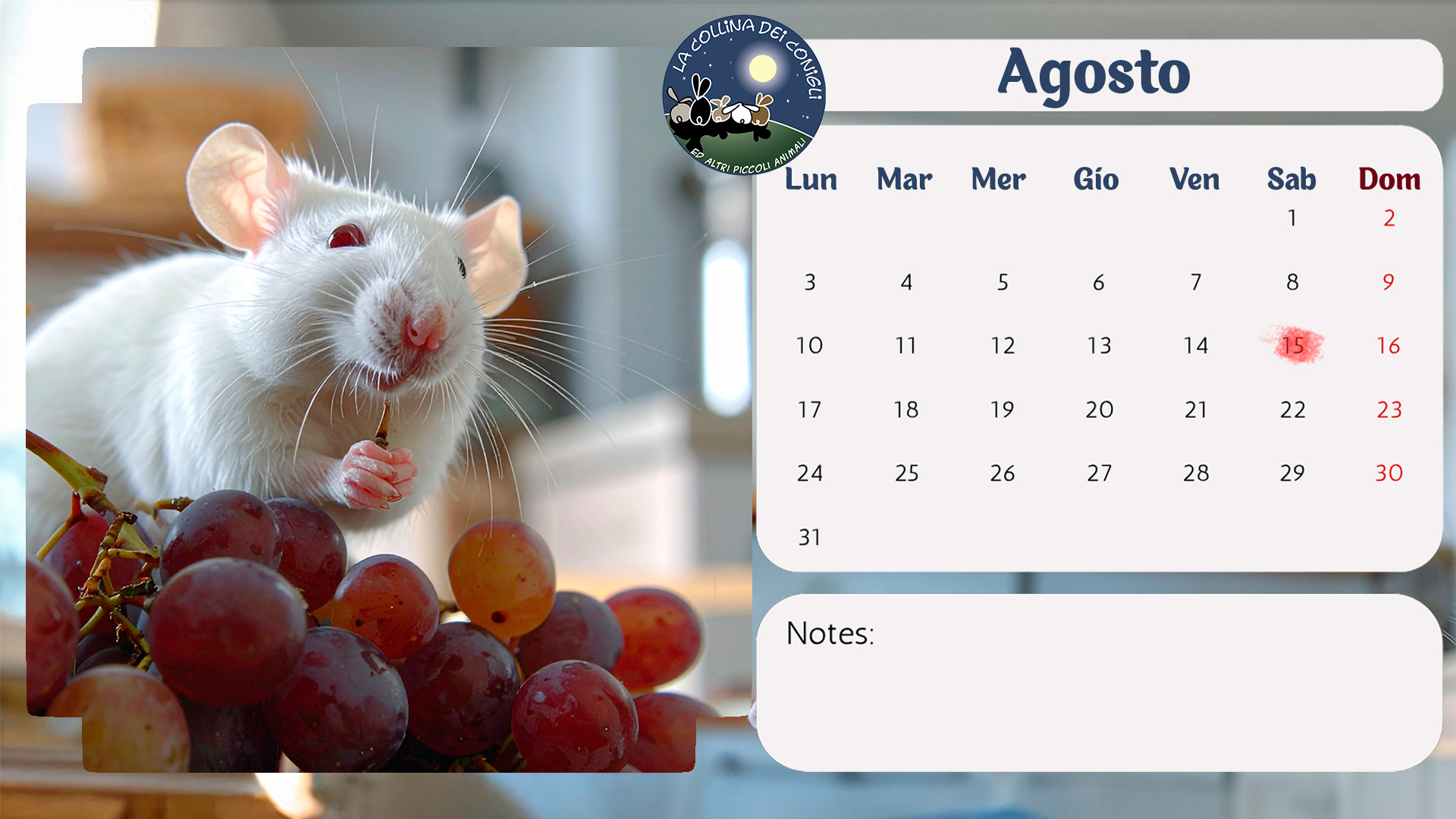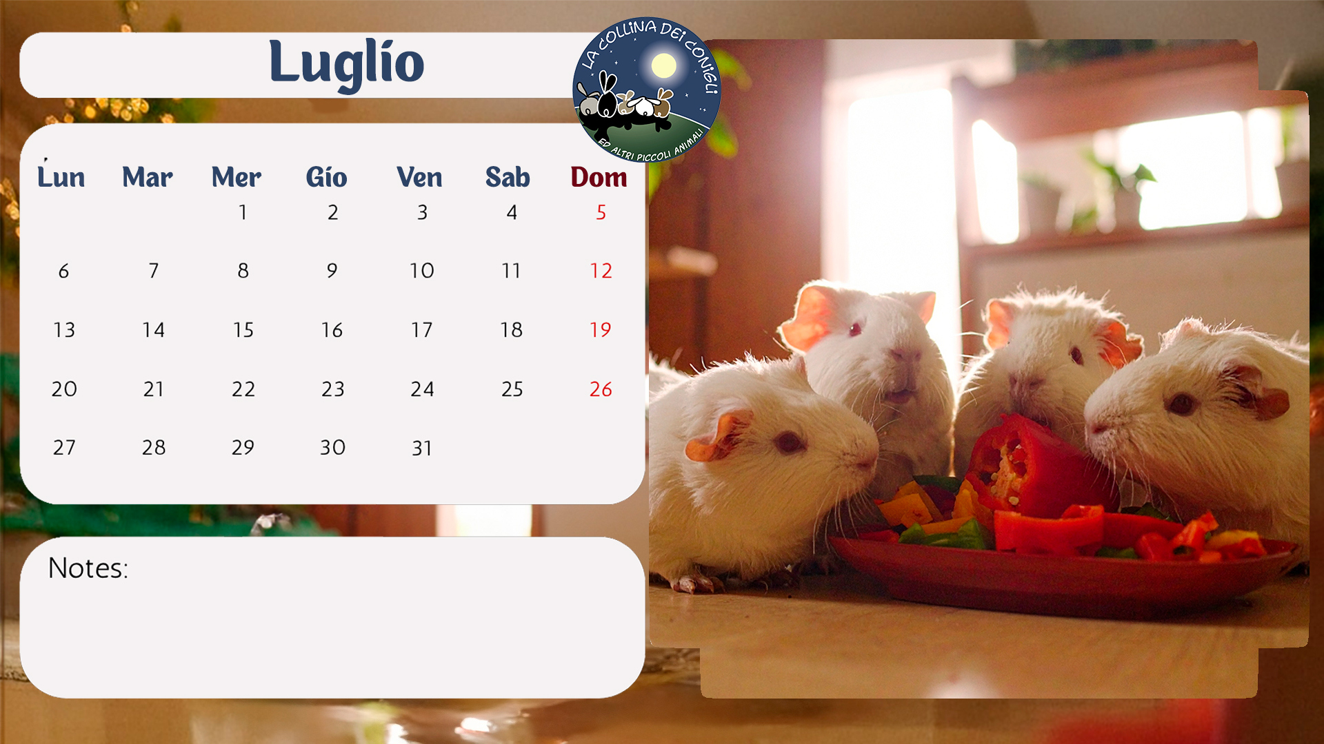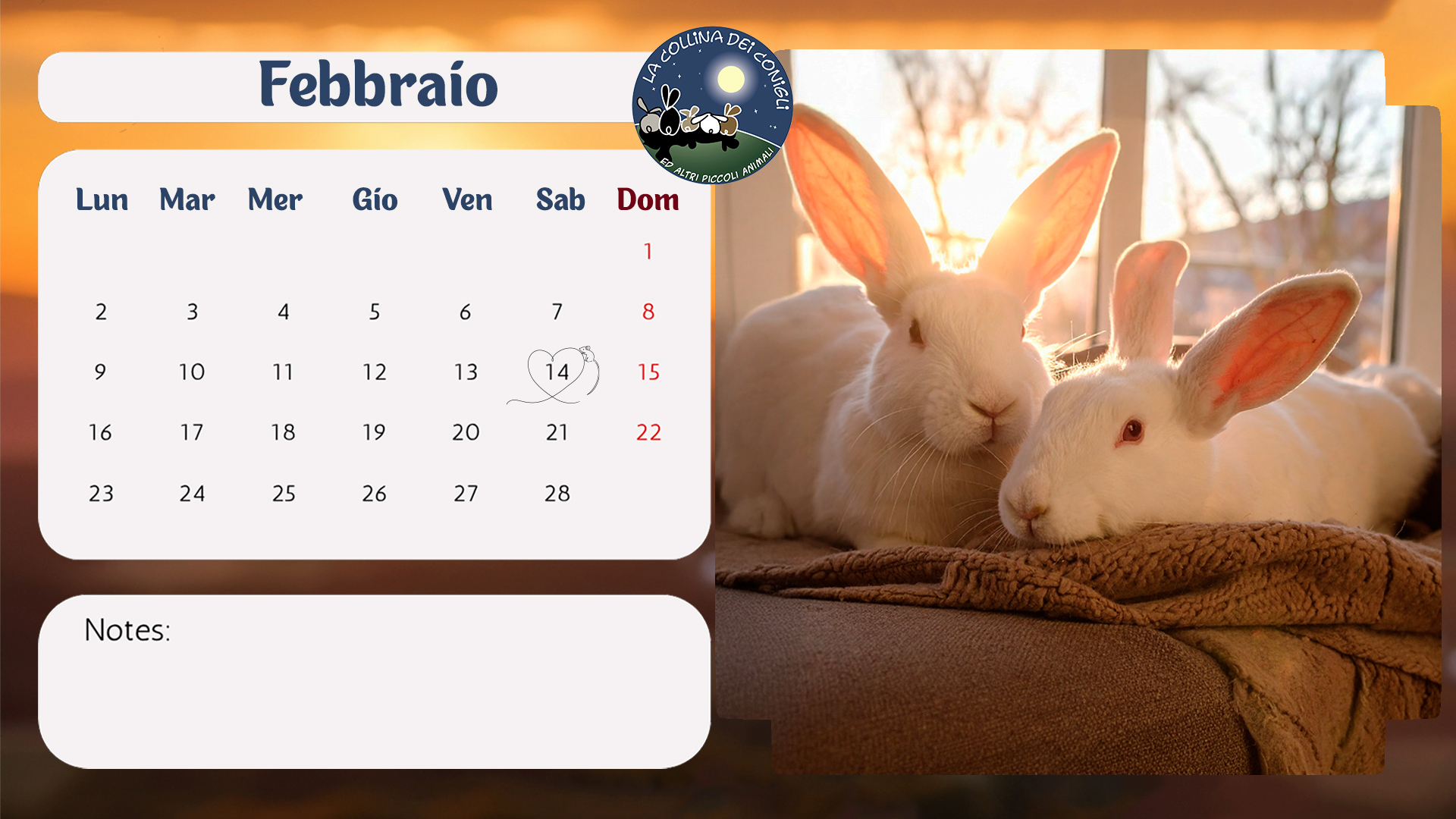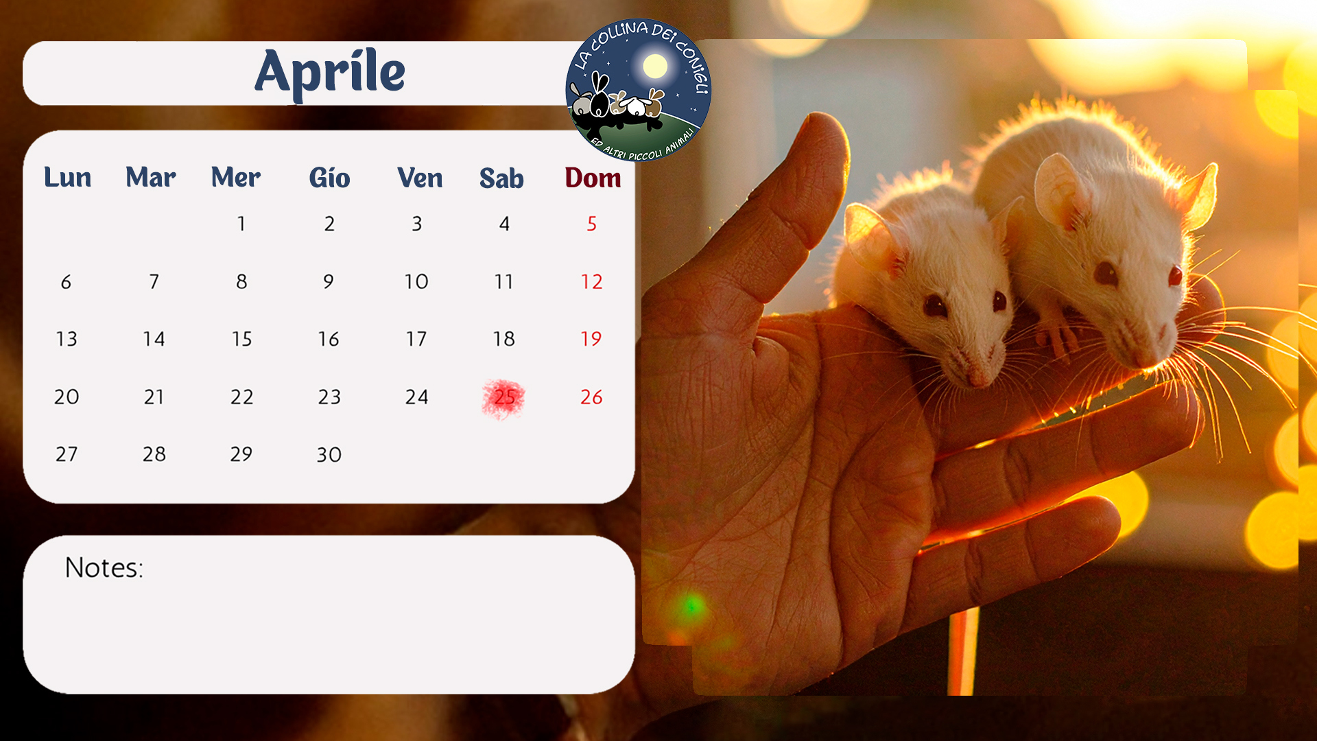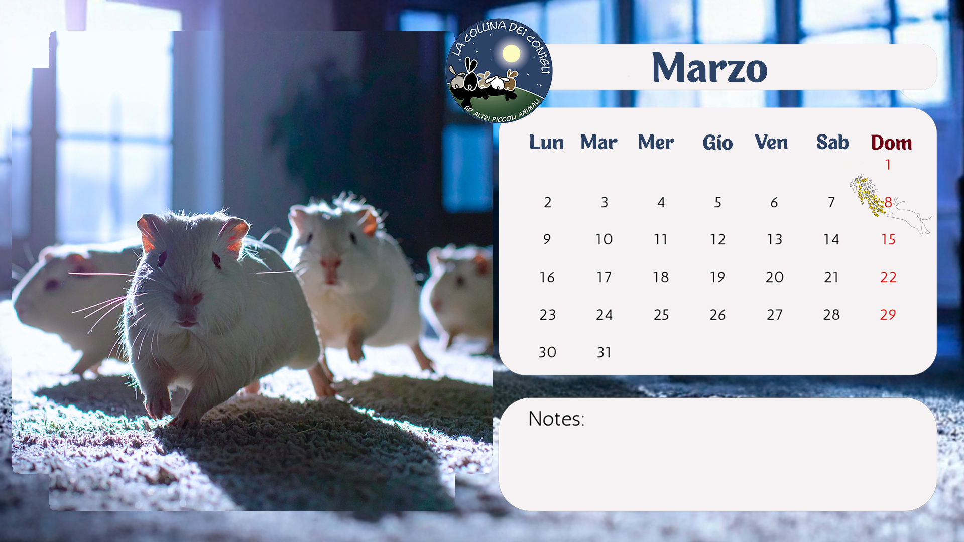 Sono arrivati i nuovo Calendari de La Collina dei Conigli! Tantissime foto di conigli, porcellini d'India e altri piccoli animali dell'Associazione. “Regalati un anno di dolcezza e speranza: acquistando il Calendario 2026 de La Collina dei Conigli ODV trasformi il destino di conigli, cavie, ratti e topi salvati dai laboratori. Ogni mese è un piccolo atto d’amore che diventa cura, protezione e nuova vita.”