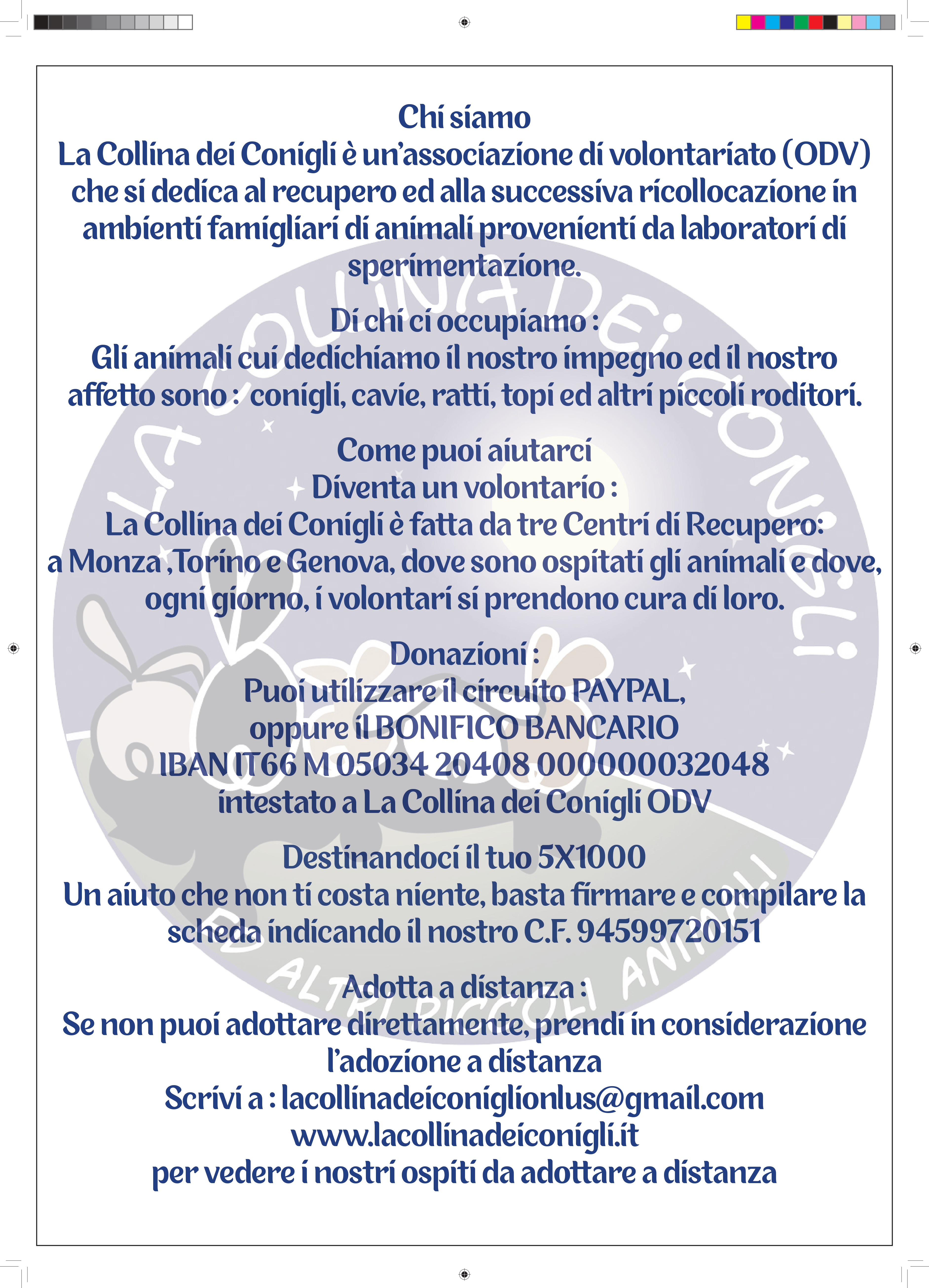 Per avere il tuo scrivi a lacollinadeiconiglionlus@gmail.com