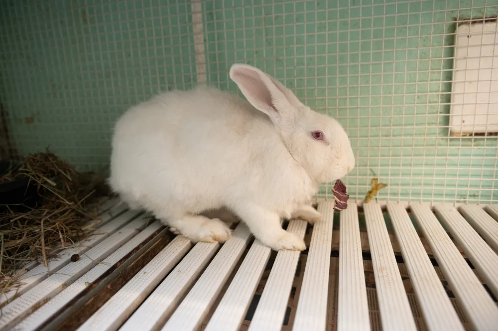 Fa parte di un gruppo di conigli recuperati da un laboratorio