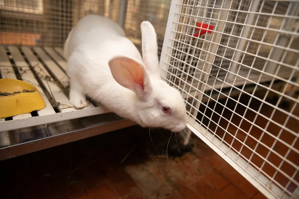 Fa parte di un gruppo di conigli recuperati da un laboratorio