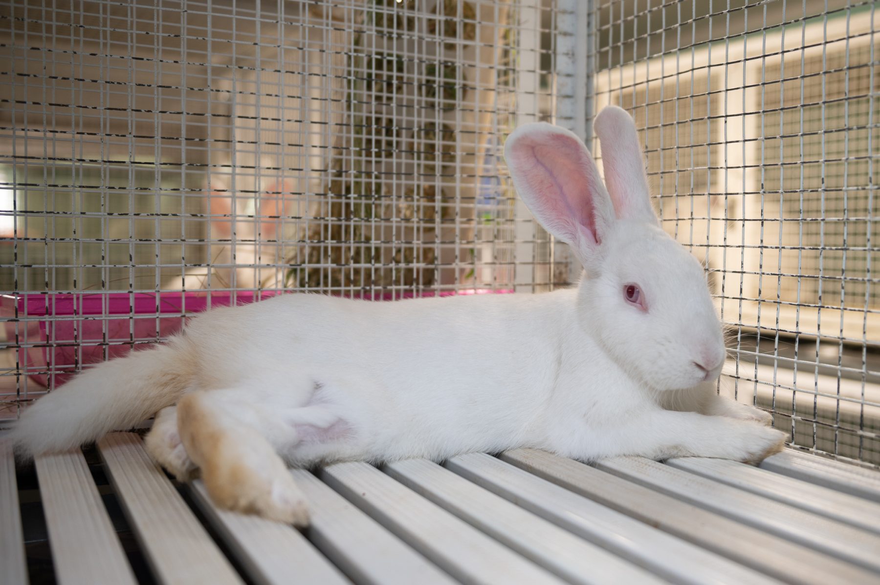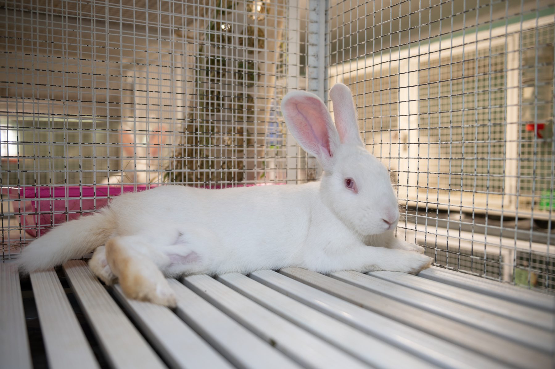 Fa parte di un gruppo di conigli recuperati da un laboratorio
