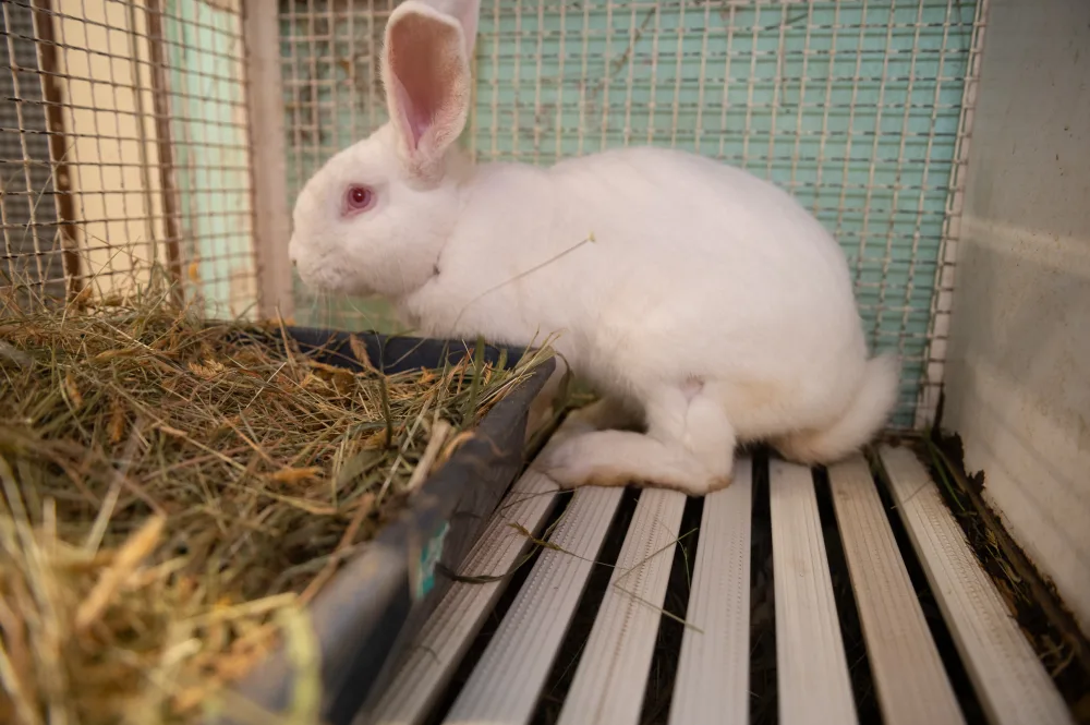 Fa parte di un gruppo di conigli recuperati da un laboratorio