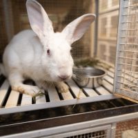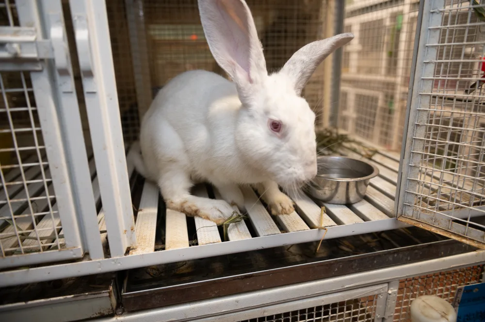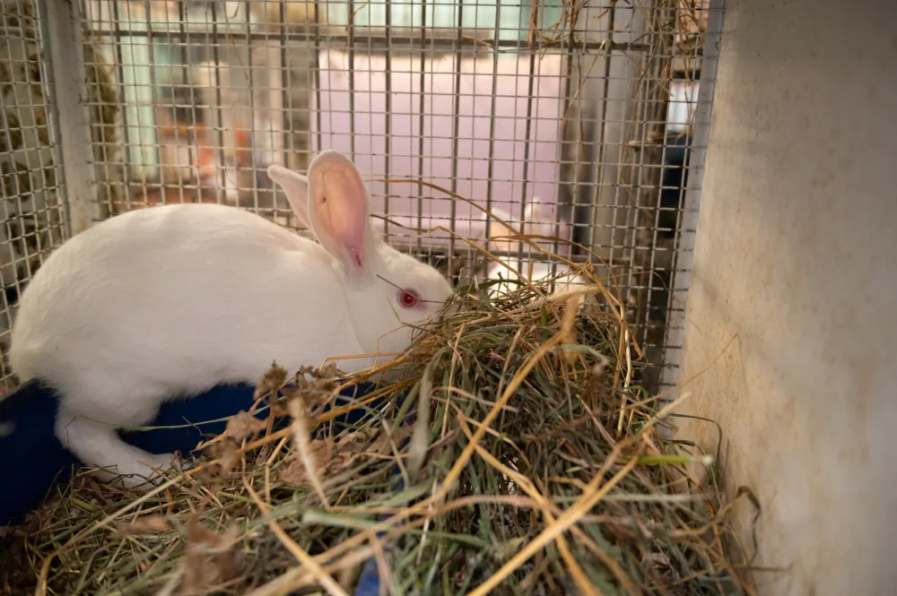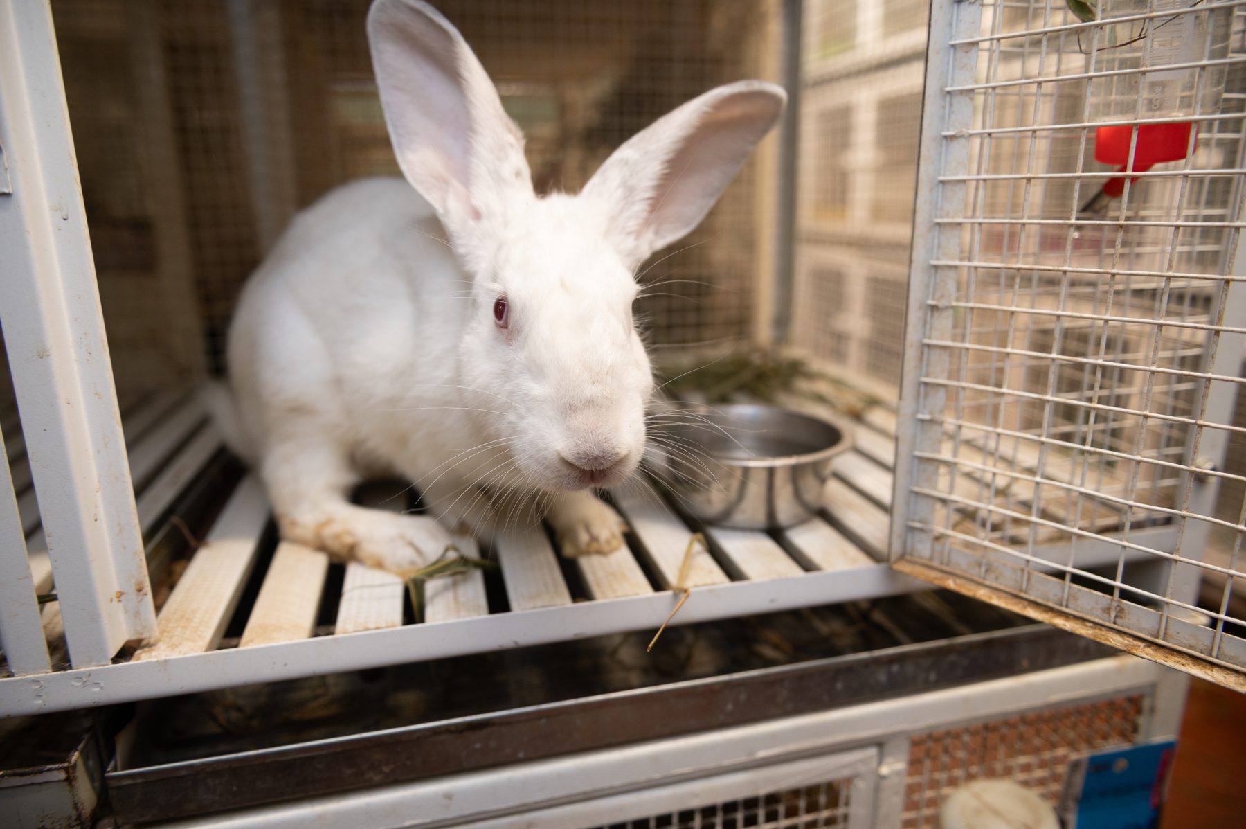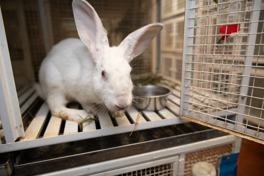 Fa parte di un gruppo di conigli recuperati da un laboratorio