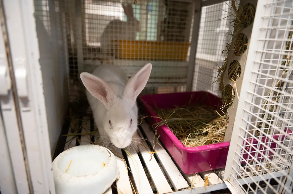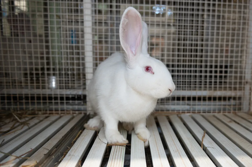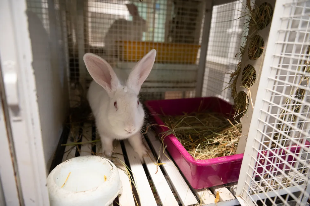 Fa parte di un gruppo di conigli recuperati da un laboratorio