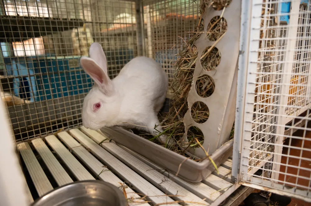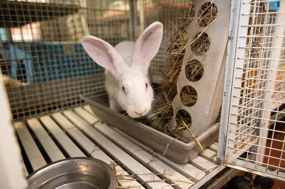 Fa parte di un gruppo di conigli recuperati da un laboratorio