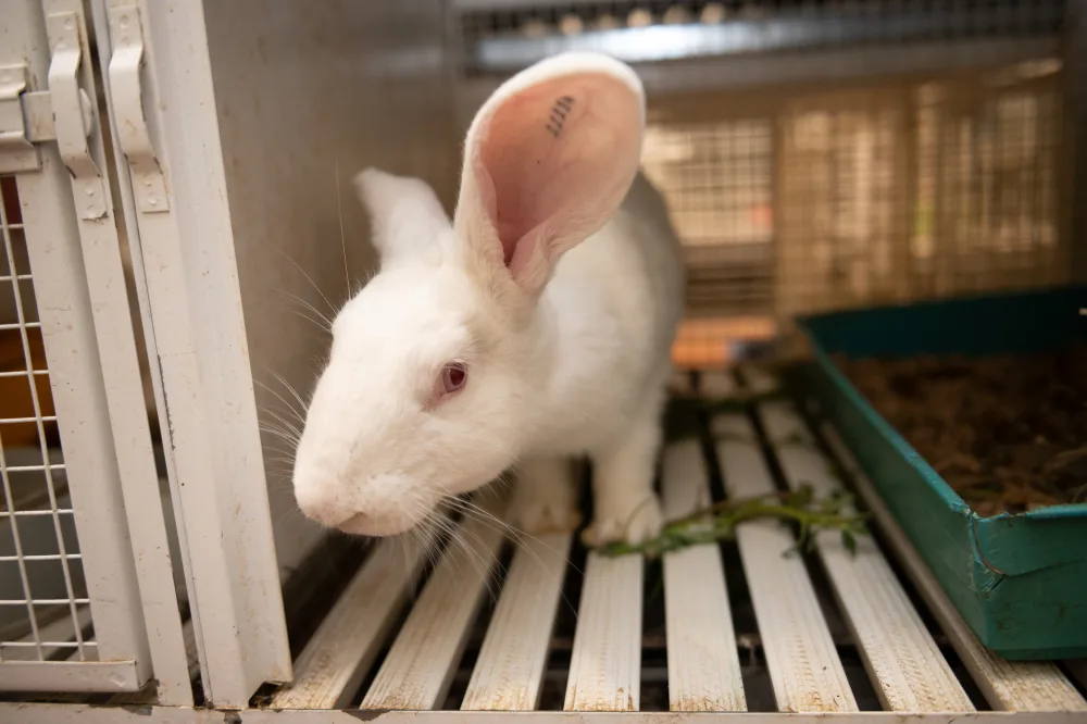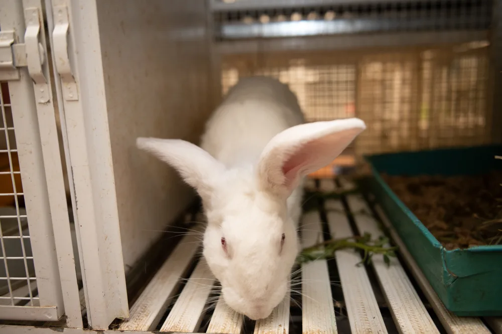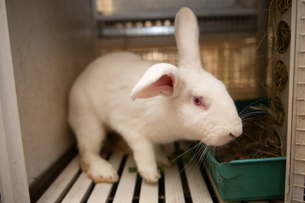 Fa parte di un gruppo di conigli recuperati da un laboratorio